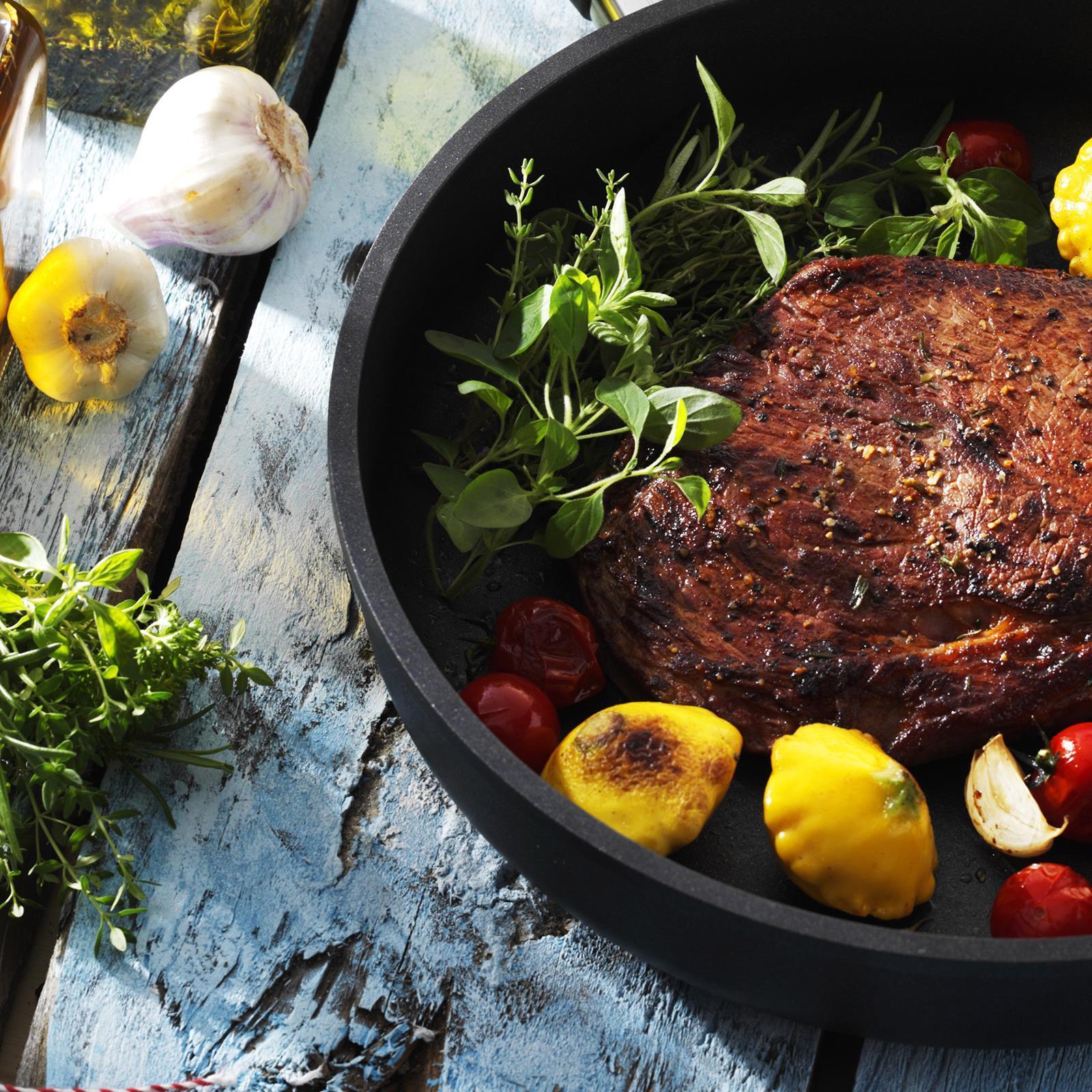 ✓ Pflegeleichte, beschichtete Hochrandpfanne, ideal für eine Zubereitung von Steaks oder Schmorgerichte